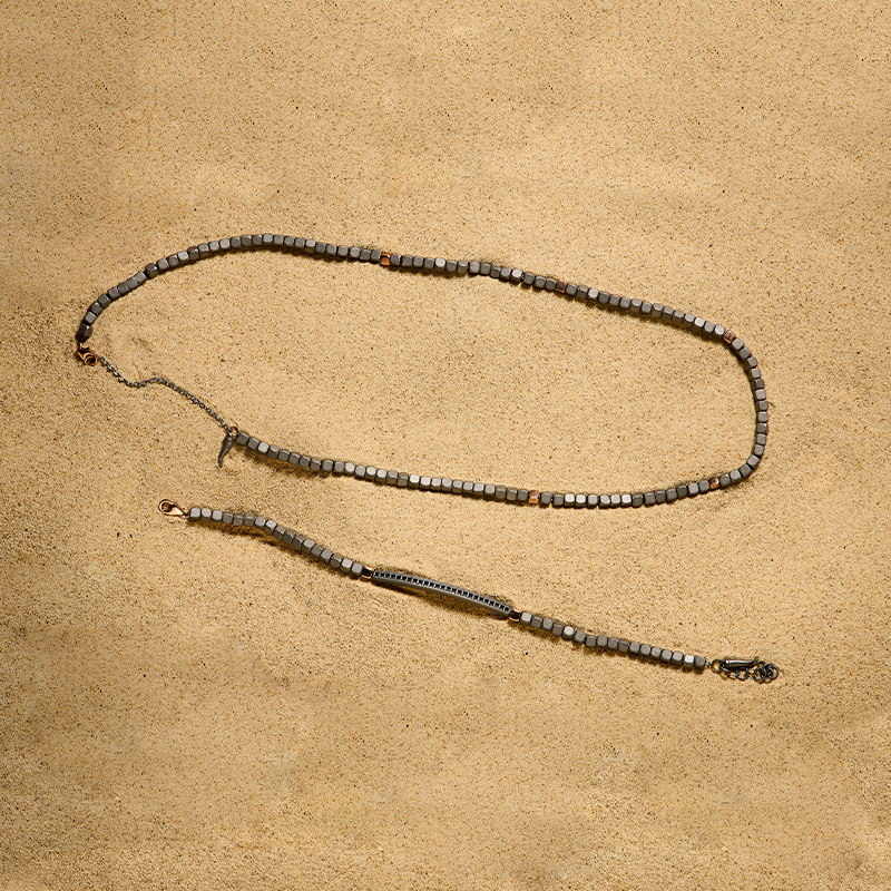 MANO J – Bracciale uomo con cubi in titanio e oro rosso 9kt