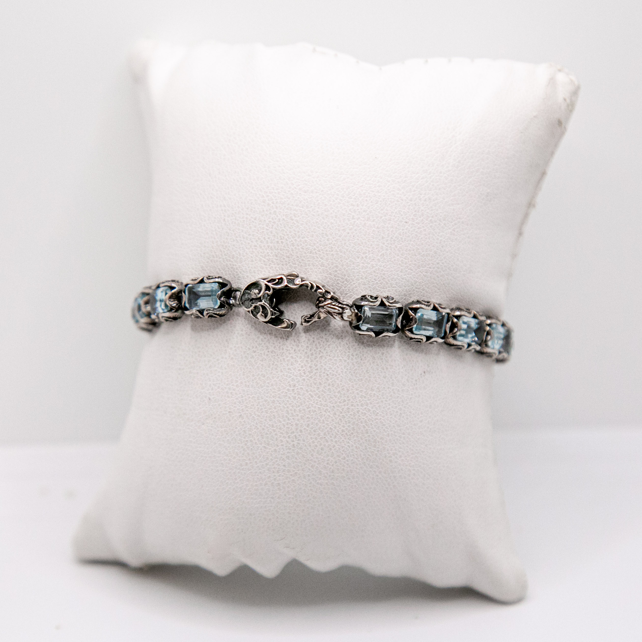 MARIA LUISA – Bracciale Tennis 17 pietre, Argento 925 brunito, Topazio Azzurro