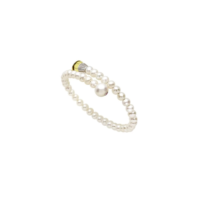 Materiale: Perle freshwater bianche con oro bianco, argento Pietre: Quarzo Lemon e zaffiro rosa sulla chiusura