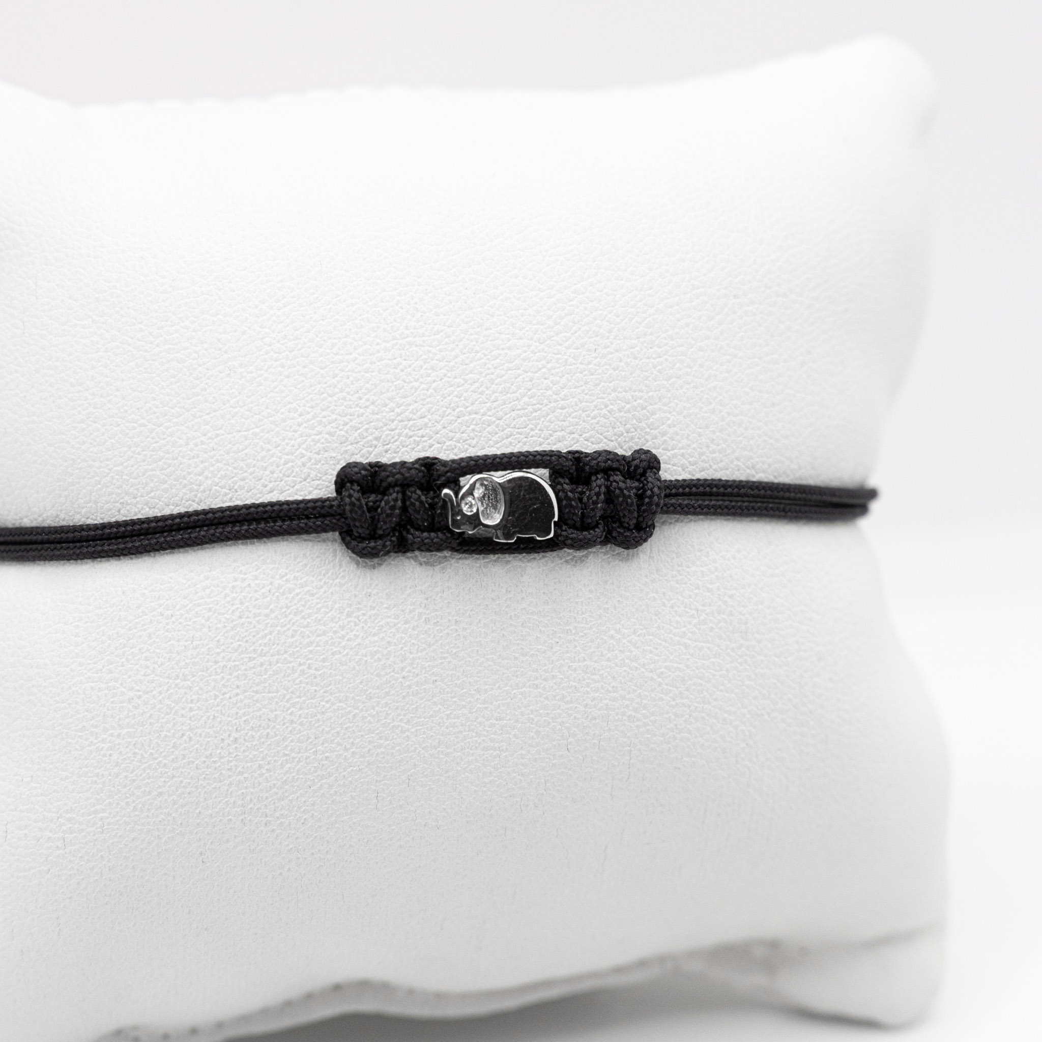 SCARABEO Bracciale con Elefante in oro bianco 18kt e cordino NERO