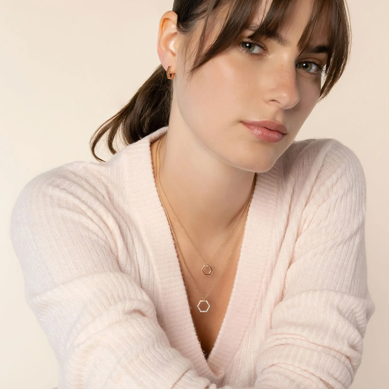 Collana con pendente esagonale Oro Bianco 18K e Diamanti