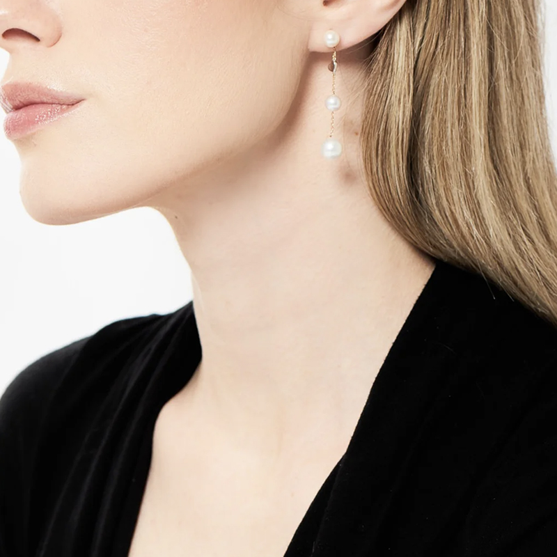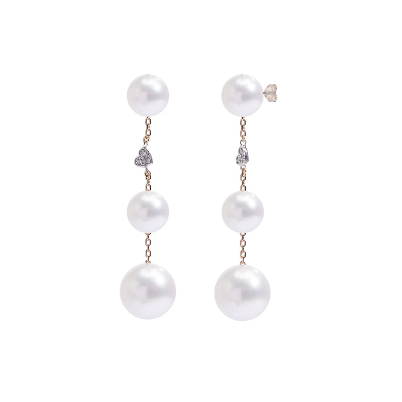 MIMì MIMì Orecchini in oro rosa, perle bianche 6-6,5 e 8-8,5 mm e diamanti 0,06ct