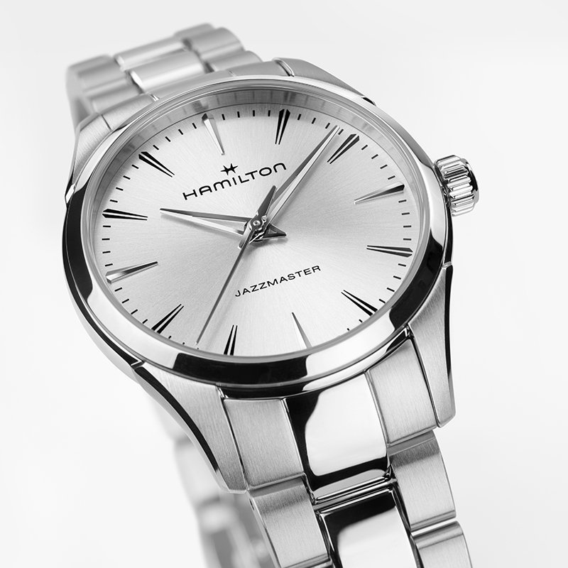 Intramontabile e raffinato, il Jazzmaster Quartz 32 mm presenta un quadrante argentato spazzolato con finitura soleil e sfere “dauphine” scheletrate, che conferiscono un tocco moderno allo stile tradizionale. La cassa ultrasottile e i dettagli lucidi e spazzolati creano una silhouette elegante. Un orologio classico ed elegante per una raffinatezza disinvolta.